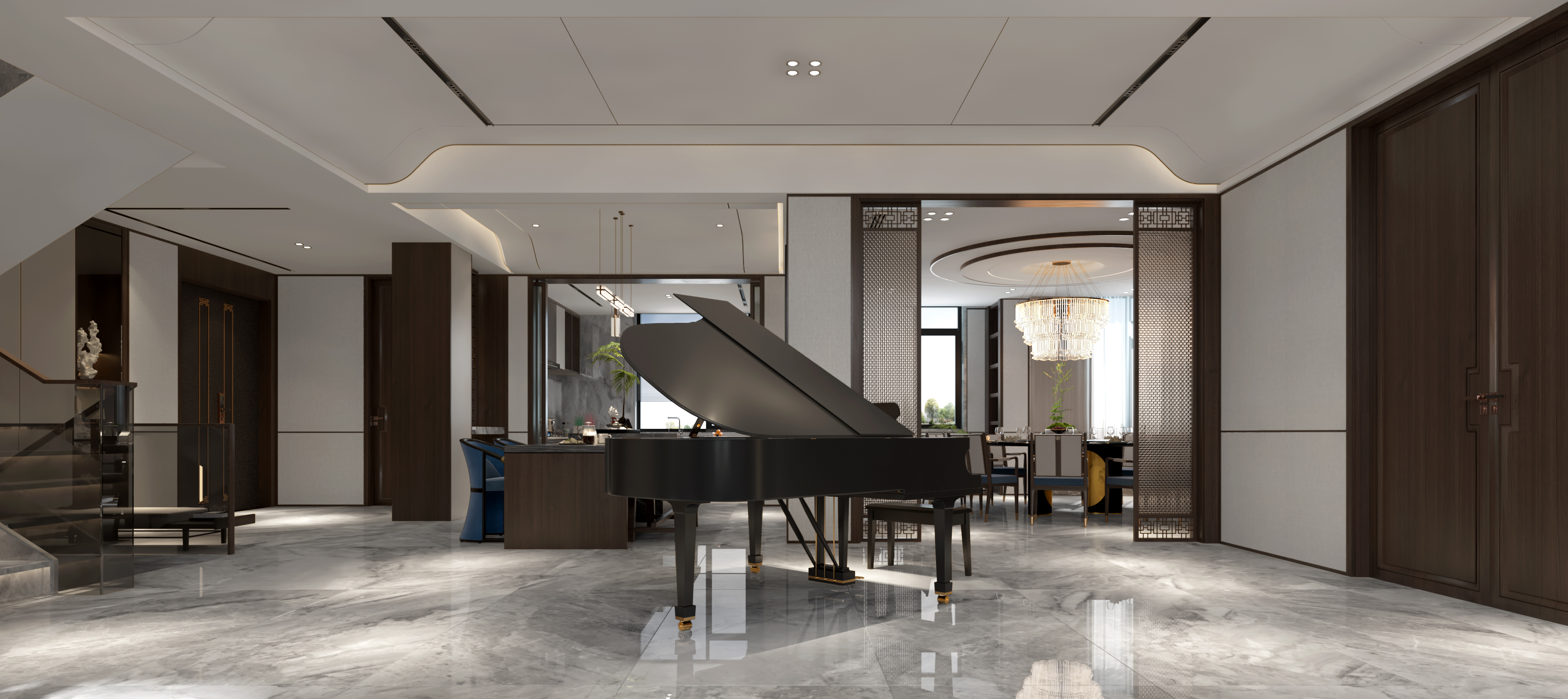 布局上,新中式風(fēng)格強(qiáng)調(diào)“天人合一”的哲學(xué)思想,注重空間的通透與流暢。在別墅裝修中,新中式風(fēng)格通過合理的空間規(guī)劃,使室內(nèi)外景觀相互滲透,形成了一種“借景抒情”的意境。同時,新中式風(fēng)格還善于運(yùn)用屏風(fēng)、隔斷等中式元素,營造出一種虛實(shí)相間的空間感,既滿足了居住需求,又增添了空間的藝術(shù)性。